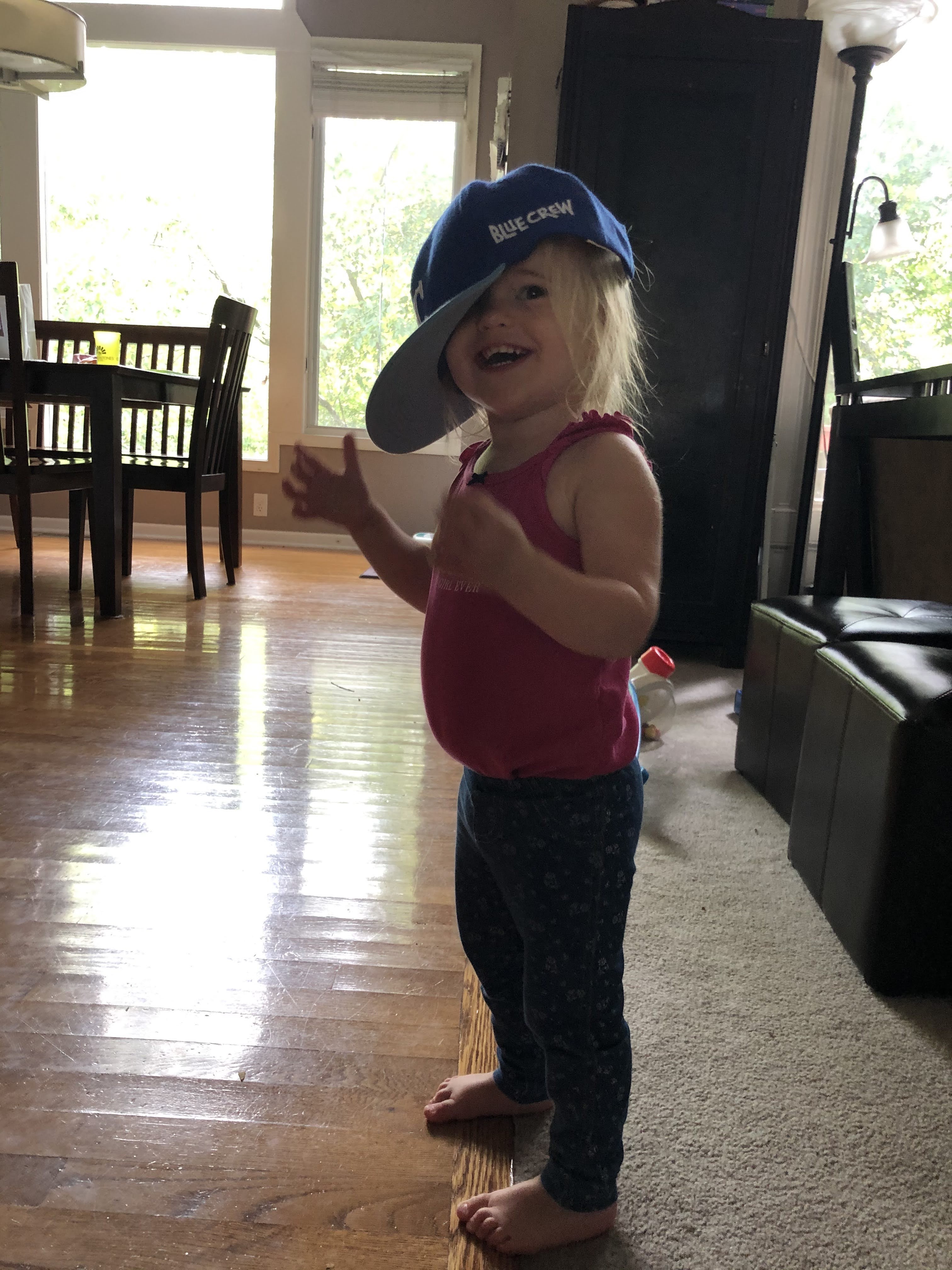 Juliet thought it was hilarious to wear big kid hats when we got home.
